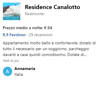 CONSIGLI SALVA EURO: Se sei alla ricerca di un LAST MINUTE o semplicemente vuoi massimizzare il tuo risparmio, le offerte Booking.com sono la soluzione ideale. Per trovare le occasioni più convenienti, cerca un alloggio su Booking con il tuo cellulare (verifica tu stesso, di solito per la stessa struttura, ci sono prezzi differenti se vista su PC o Smartphone).