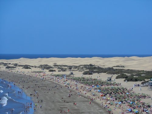 La spiaggia di Maspalomas, come puoi vedere nell’immagine sopra, è ampissima: piacevole passeggiare per chilometri ma se il tuo obiettivo è nuotare allora meglio scegliere di soggiornare vicino alle belle spiagge di Playa Amadores, Puerto Rico o Anfi del Mar.